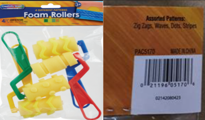 Nearly 2,900 foam pattern rollers for children's painting recalled due to excessive lead levels. Sold online and at select stores (Sep 2023 - Jan 2024). Find more on the Consumer Product Safety Commission website.